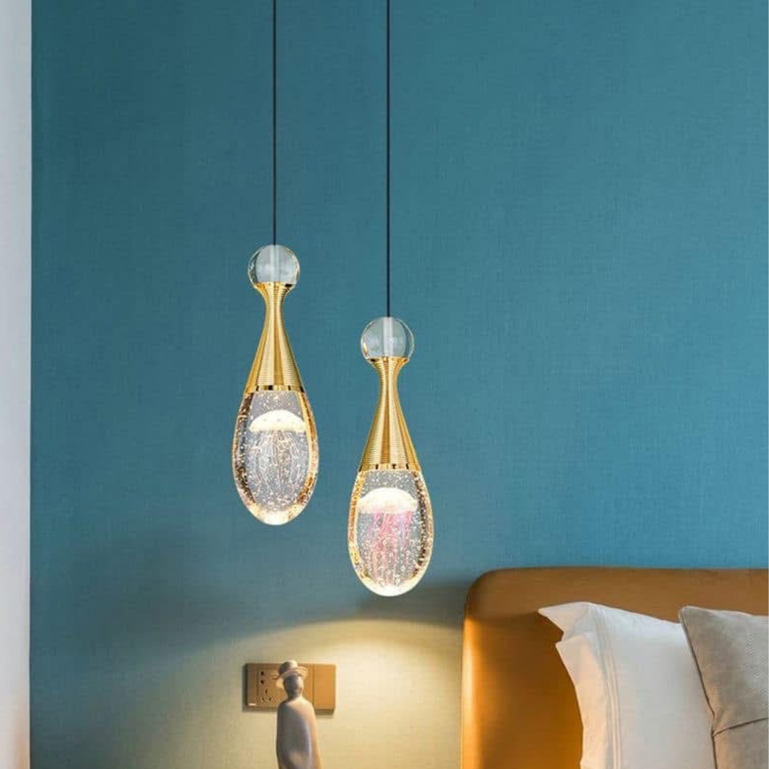 Sublimez votre intérieur avec cette suspension LED en forme de quille, un luminaire qui allie modernité et design. Fabriquée en métal, aluminium et verre, elle arbore une boule en verre transparent où trône une structure ressemblant à une méduse. L’ampoule G4 incluse émet une lumière jaune chaleureuse.